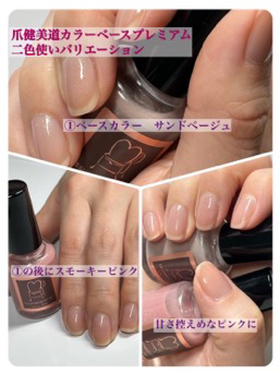 1.自爪に色素沈着して黄ばんでいる→サンドベージュで、黄ばみを補正